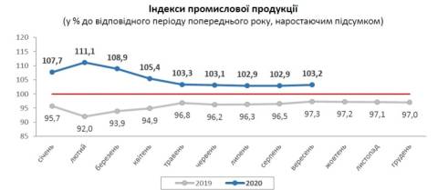 У січні-вересні, порівняно з цими місяцями 2019 року, виробництво промислової продукції в області збільшилось на 3,2%.