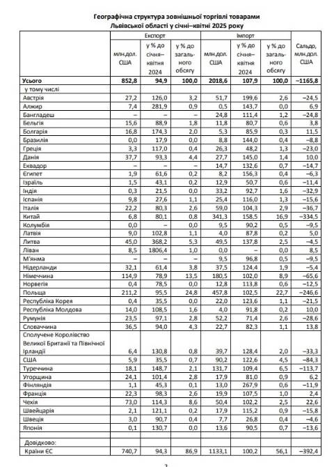 Нагадаємо, у січні-березні експорт товарів з Львівщини зменшився на 5,4%, а імпорт збільшився на 9,2%