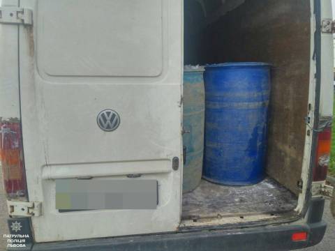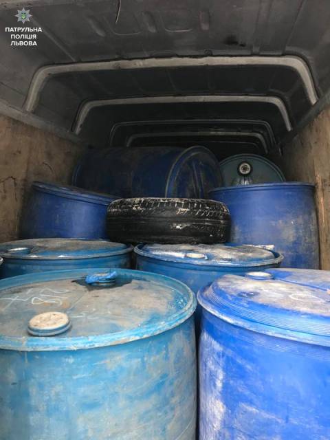 Під час спілкування з водієм, патрульні відчули різкий запах спирту та попросили відкрити кузов автомобіля. Всередині було 19 бочок із невідомою речовиною, яка і була джерелом запаху.
