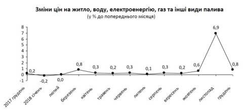 Зростання цін у житлово-комунальній сфері на 0,8% відбулося, головним чином, за рахунок підвищення тарифів на опалення (на 5,5%), водовідведення (на 1,9%) та водопостачання (на 1,5%).