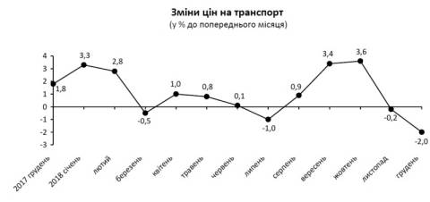 У сфері транспорту у грудні 2018 року порівняно з попереднім місяцем ціни