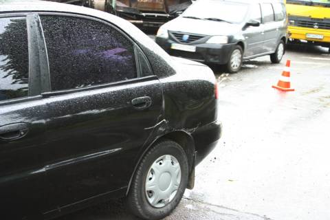 Внаслідок ДТП у легковика пошкодився задній бампер, заднє крило та двері, але попри незначні пошкодження, рух автомобілів по проспекту Чорновола ускладнився ще більше.