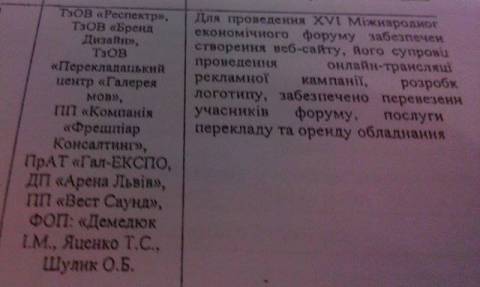 Як йдеться у документі: "При підготовці Міжнародного економічного форуму 8,5 тис грн було зекономлено за результатами проведення процедур державних закупівель при визначенні виконавця зі створення веб-сайту".