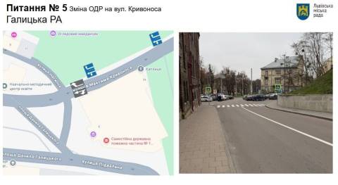 На вул. Кривоноса змінять організацію руху шляхом встановлення дорожніх знаків напрямків руху по смугах. З правої смуги рух буде дозволений праворуч – на вул. Насипну. З лівої смуги можна буде їхати прямо на пл. Данила Галицького та ліворуч – на вул. Підвальну. На перехресті цих вулиць також нанесуть розмітку острівця безпеки. Орієнтовний термін реалізації – до 15 квітня.