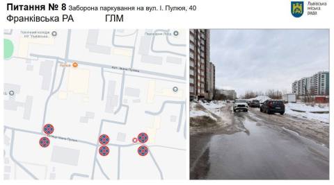 Крім цього, для забезпечення безперешкодного проїзду транспортних засобів на вулиці Івана Пулюя, 40 запровадять заборону паркування з обох сторін дороги. Рішення має бути виконане до 1 березня цього року.