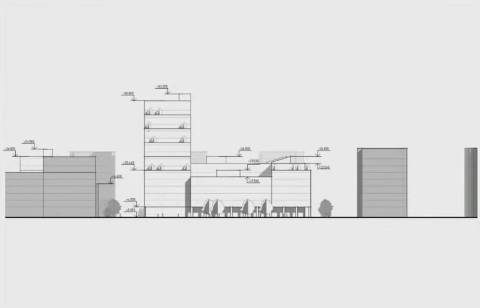Починаючи від шостого поверху, 16-рівнева конструкція передбачатиме уступи-тераси що два яруси для візуального зменшення її масивності.