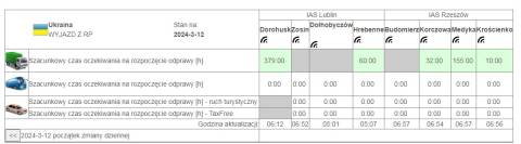За інформацією польських прикордонників, станом на сьогодні на ранок у п'яти пунктах пропуску на кордоні з Україною зафіксували черги з вантажівок, зокрема, час очікування на в'їзд в Україну складав від 10 до 379 годин.