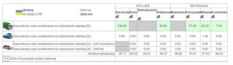 Зокрема, затримки спостерігалися у пункті пропуску "Шегині – Медика", де час очікування вантажівок склав 62 години, у пункті пропуску "Смільниця – Кросценко" – 7 годин, у пункті пропуску "Краківець – Корчова" – 57 годин, у пункті пропуску "Рава-Руська – Гребенне" – 30 годин, у пункті пропуску "Угринів – Долгобичув" – 106 годин.