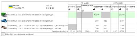 За інформацією польських прикордонників, станом на сьогодні на ранок у двох пунктах пропуску на кордоні з Україною зафіксували черги з вантажівок, зокрема, час очікування на в'їзд в Україну складав до 266 годин.