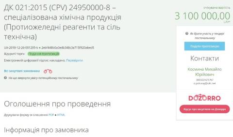 Про це йдеться на сайті публічних закупівель ProZorro.
