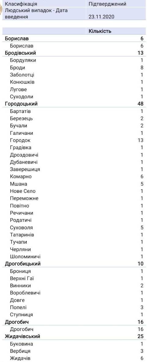 Сьогодні, 24 листопада, у Львівській області підтвердили інфікування на Covid-19 за добу у 771 особи, найбільше – у Львові (336), Пустомитівському (92), Миколаївському (разом із Новим Роздолом – 60) та Городоцькому (48) районах.