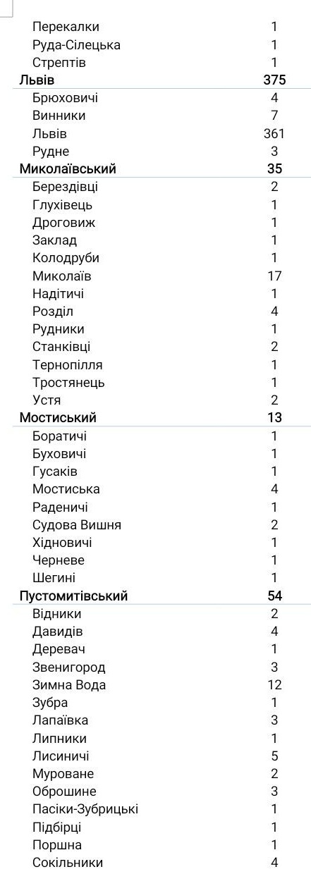 За добу у Пустомитівському районі зафіксували 54 нових випадків інфікування коронавірусом, що найбільше з-поміж усіх районів області.