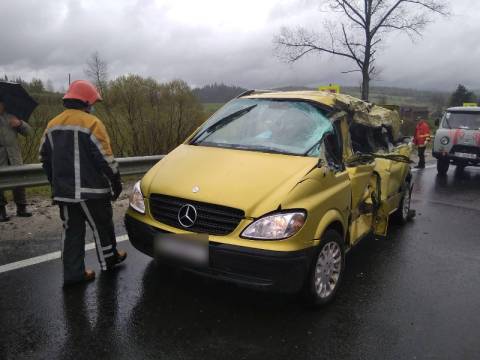 Вчора, 24 травня, о 11:21 год на дорозі Київ – Чоп в селі Тухолька Сколівського району зіткнулися авто Mercedes-Benz VITO та напівпричеп вантажного автомобіля MAN.