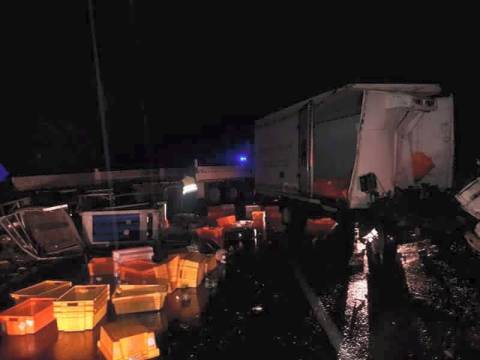 Сьогодні близько 01.00 год на дорозі Київ – Чоп у селі Козьова Сколівського району зіткнулися вантажівка з холодильною установкою BAS Trucks та фура «МАН».