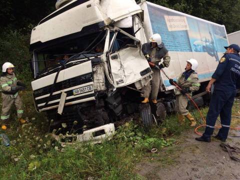 Як встановили правоохоронці, зіткнулись вантажівки "Вольво", якою керував громадянин Білорусі, та "ДАФ", за кермом якої перебував мешканець Вінницької області. Останньому лікарі наразі встановлюють діагноз.
