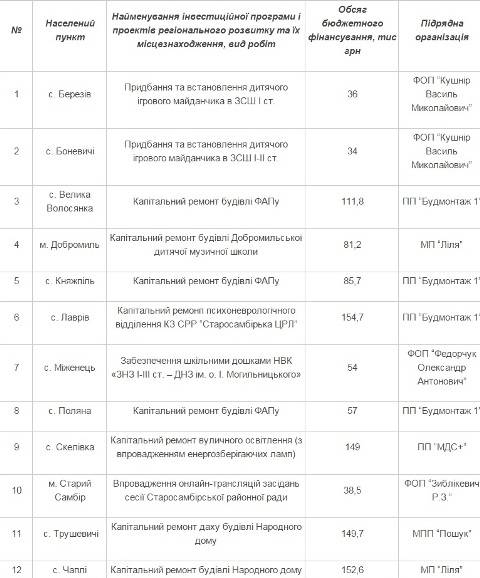 Як заявила начальник управління аналізу та стратегічного планування департаменту економічної політики Львівської ОДА Валентина Москаленко, цього року на фінансування проектів регіонального розвитку у Старосамбірському районі передбачено 13 млн 442,2 тис грн.