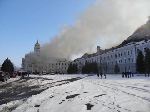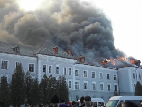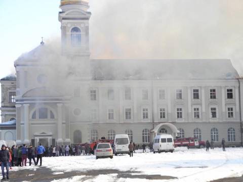 Пожежа виникла у колишньому колегіумі єзуїтів в Хирові та перекинулася на церкву.