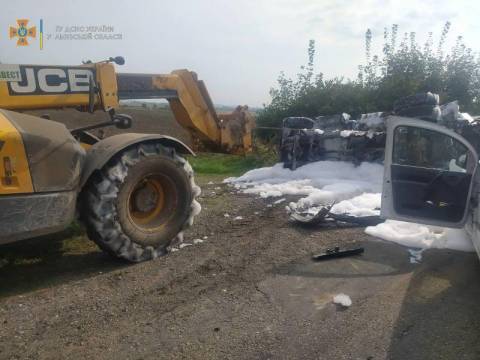 Також через ДТП з вантажівки на дорогу витекло дизпаливо, яке покрило площу у 4 кв.м. Цистерна з паливом не пошкодилась.