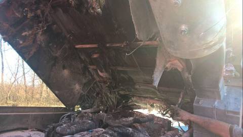 Вогнем було пошкоджено моторний відсік транспортного засобу на площі 1 кв.м та обшивку кабіни на площі 2 кв.м.