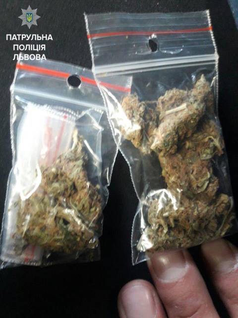 Того ж дня на вулиці Скрипника патрульні зупинили чоловіка, який мав два пакети з речовиною рослинного походження. Зі слів особи, в пакетах був канабіс.