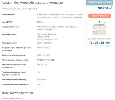 Аукціон стартує 28 січня, а початкова вартість приміщення становить 701 280 грн.