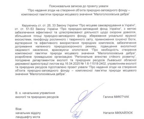На сайті Львівської міськради підготували та оприлюднили проєкти ухвал про надання згоди на створення об’єктів природно-заповідного фонду – комплексної пам’ятки природи місцевого значення "Малоголосківська дебра" та ландшафтного заказника місцевого значення "Північні Торфовища".