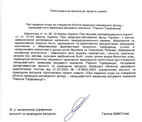 Натомість ландшафтний заказник "Північні Торфовища" створять на території площею 505 га, що на території Львівської громади, за межами міста Дубляни та сіл Гряда, Ситихів, Малі Підліски.