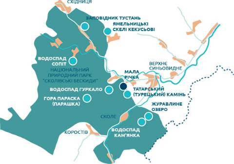 "Кемпінг "Мала Річка" – це великі можливості для відпочинку. Поруч доступ до туристичних магнітів регіону: Сколівські Бескиди з горою Парашка, водоспади Гуркало та Кам’янка, історичний заповідник Тустань" – йдеться у повідомленні.