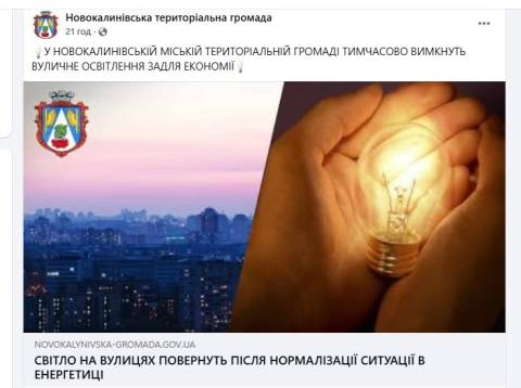 Наразі невідомо, коли вуличне освітлення відновлять. Мешканців просять з розумінням віднестися до тимчасових незручностей та економно споживати електроенергію.