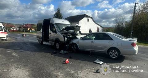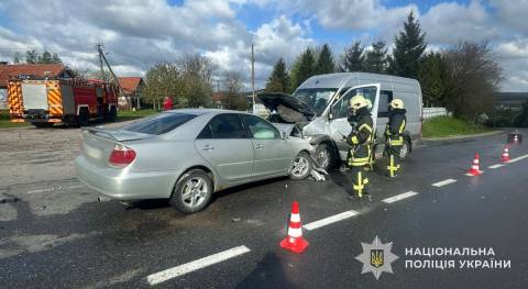 Вчора, 26 квітня, близько 08:30 год на дорозі Мукачево – Львів поблизу села Соколівка Львівського району зіткнулись авто Toyota Camry, яким керував 40-річний мешканець Чернівців, та авто Volkswagen Crafter під керуванням 51-річного мешканця Івано-Франківської області.