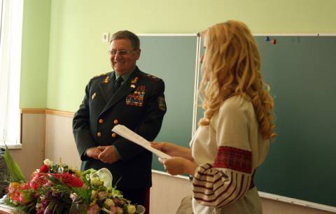 Для першокласників розпочав перший урок начальник Академії сухопутніх військ імені гетьмана Петра Сагайдачного генерал-лейтенант Павло Ткачук.