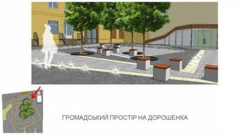 Зі середини травня стартують роботи із облаштування громадського простору між будинками на вул. Дорошенка, 5-7.