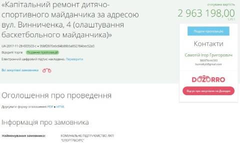 ЛКП "Спортресурс" проводить закупівлю на капітальний ремонт дитячо-спортивного майданчика, що на вул. Винниченка, 4.