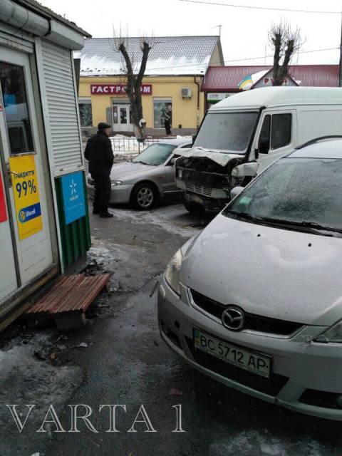 Як зазначають очевидці події, водій мікроавтобуса Mercedes-Benz не впорався з керуванням, відтак автомобіль занесло настільки, що він врізався у магазин.