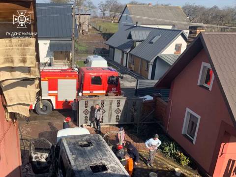 Вогонь повністю знищив автомобіль та пошкодив підшивку даху житлового будинку на площі 10 кв.м.