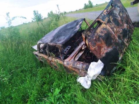 Як з'ясували надзвичайники, автівка з'їхала в кювет, перекинулася і зайнялася.