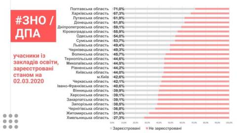 Найактивніше учні реєструються в Полтавській (71% від очікуваної кількості), Харківській (67,3% від очікуваної кількості), Луганській (61,9% від очікуваної кількості), Донецькій (61,8% від очікуваної кількості) областях. Натомість Львівська область знаходиться на де'ятому місці із поазником у 49,4% зареєстрованих.