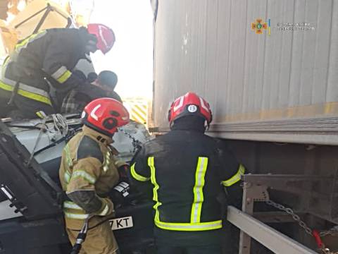 Рятувальники за допомогою гідравлічного інструменту деблокували потерпілого з вантадівки та відключили акумуляторну батарею.