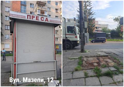 У місті демонтували чотири МАФи на проспекті Чорновола, 43 й 57, вул. Мазепи, 12 та із зупинки громадського транспорту (кінцева зупинка тролейбуса №33) на вул. Мазепи.