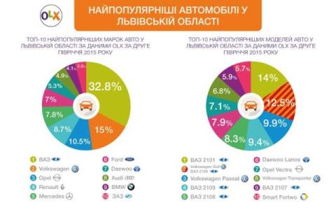 У топ-10 найпопулярніших марок автомобілів у Львівській області за друге півріччя 2015 року входять: ВАЗ, Volkswagen, Opel, Renault, Mercedes, Ford, Daewoo, Audi, BMW, ЗАЗ. А лідерами другого півріччя 2015 року є ВАЗ 2101, Volkswagen Golf / ВАЗ 2106, Volkswagen Passat, ВАЗ 2109, ВАЗ 2108, Daewoo Lanos, Opel Vectra, Volkswahen Transporter, ВАЗ 2107, Smart Fortwo.