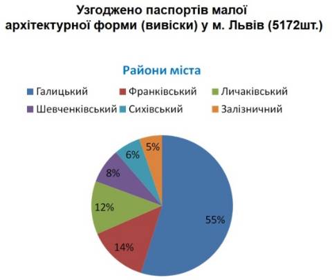 Найбільше вивісок розміщено у Галицькому районі Львова, найменше – у Залізничному.