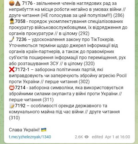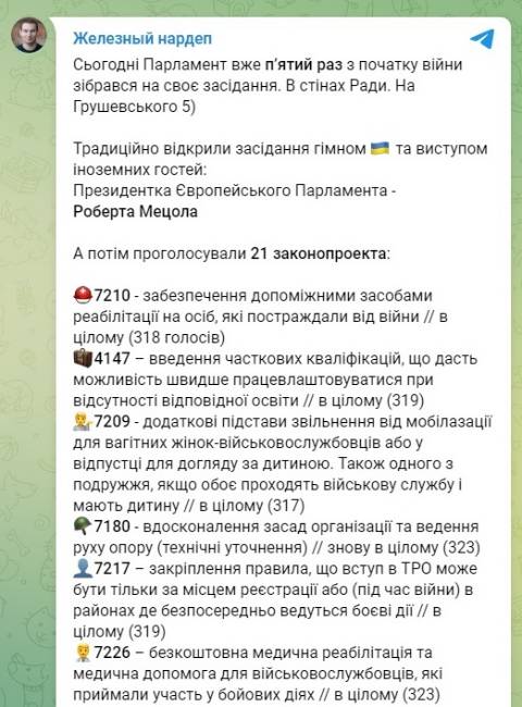 Про це повідомляє народний депутат Ярослав Железняк у Telegram.