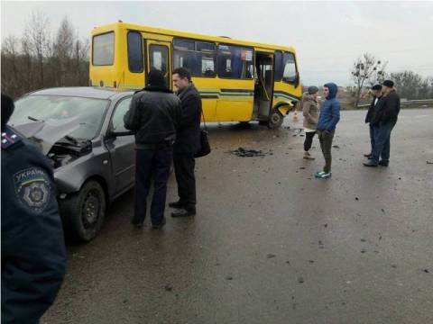 Сьогодні в селі Давидів, що неподалік Львова, трапилась аварія: автівка зіткнулась із маршруткою.