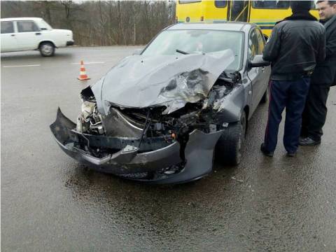 Сьогодні близько 16:00 год у селі Давидів Пустомитівського району автомобіль марки «Мазда» зіткнувся з маршруткою №247 Львів-Гринів.