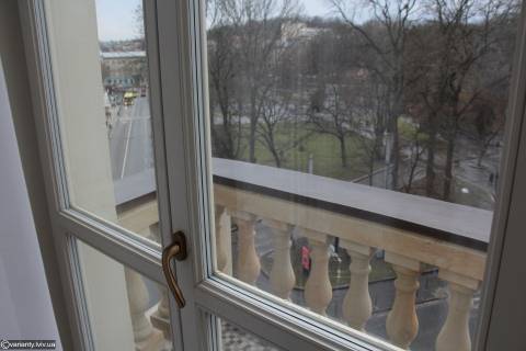 Лише мондріанівські килимки перед дверима номера імені Василя Вишиваного передають хоч якийсь відгомін того часу всім присутнім, які дивляться під ноги. Найкращий номер готелю Bankhotel (21 штука за добу), який так полюблять різноманітні дипломати (та поляки), нічим особливо не вражає. Темно, тьмяно, сіро. Галасливий універ за вікном. Непретензійний люкс без жодних збоченств, непримітна функціональність без жодних зобов'язань та необтяжлива мінімалістичність.