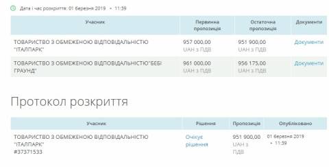 Аукціон стартував 1 березня, участь у ньому взяли дві компанії: ТзОВ "Італпарк" та ТзОВ "Бебі граунд", які запропонували за атракціон 951 900 грн та 956 175 грн відповідно. Переможцем обрали ТзОВ "Італпарк", а очікувана вартість послуг становила 964 810 грн.