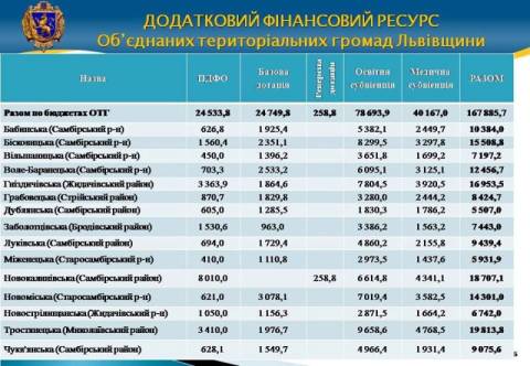 За словами керівника Офісу реформ Віталія Корецького, не виконали план лише 3 із 15 громад – Заболотцівська, Міженецька і Новоміська. Однак, до реформи із 710 міських, сільських та селищних рад Львівщини збитковими були 90%.