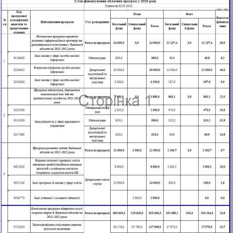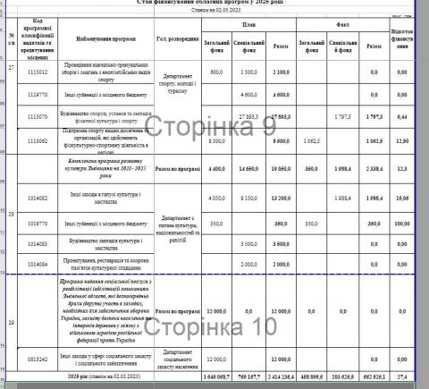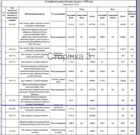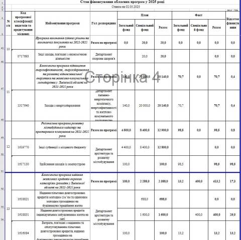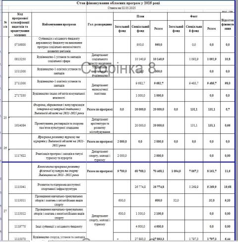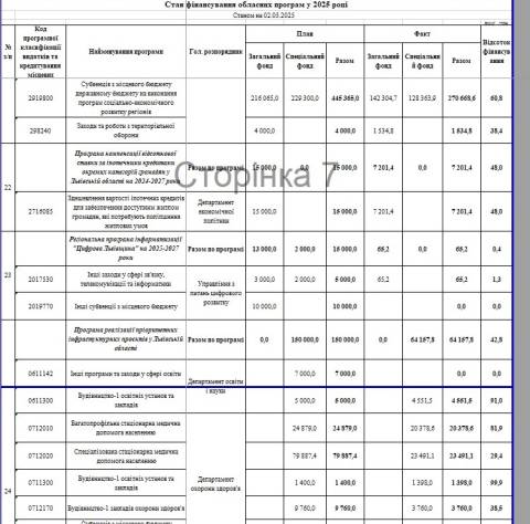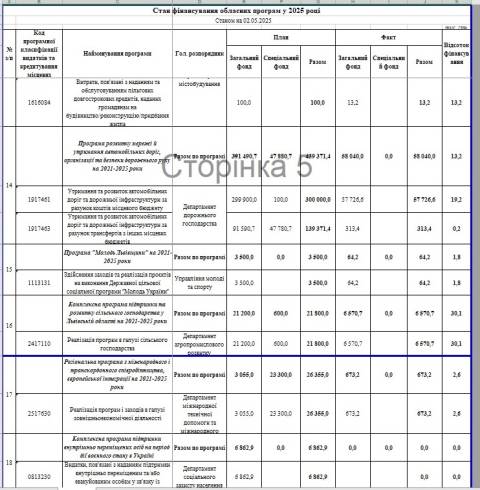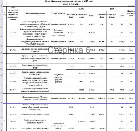 Про це йдеться у документі про стан фінансування обласних програм на 2 травня 2025 року, опублікованому на сайті Львівської ОВА.