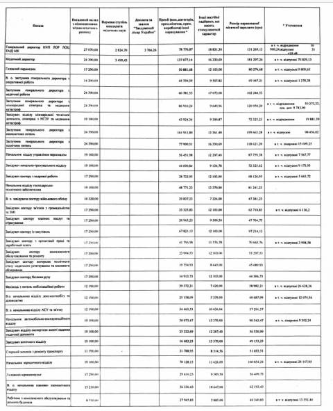 Заступник Васька з медичної роботи отримав 102 244,53 грн нарахованої зарплати, заступник з міжнародної співпраці та медицини катастроф – 120 950,20 грн, заступник з економічних питань – 199 663,28 грн, заступник з технічних питань – 118 621,20 грн, медичний директор – 181 297,26 грн.