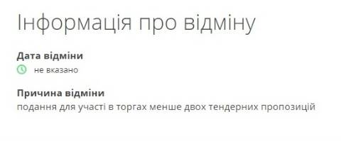 Аукціон стартував 13 лютого, на закупівлю не подалася жодна компанія, а для участі в торгах необхідно не менше двох тендерних пропозицій, відтак аукціон скасували.